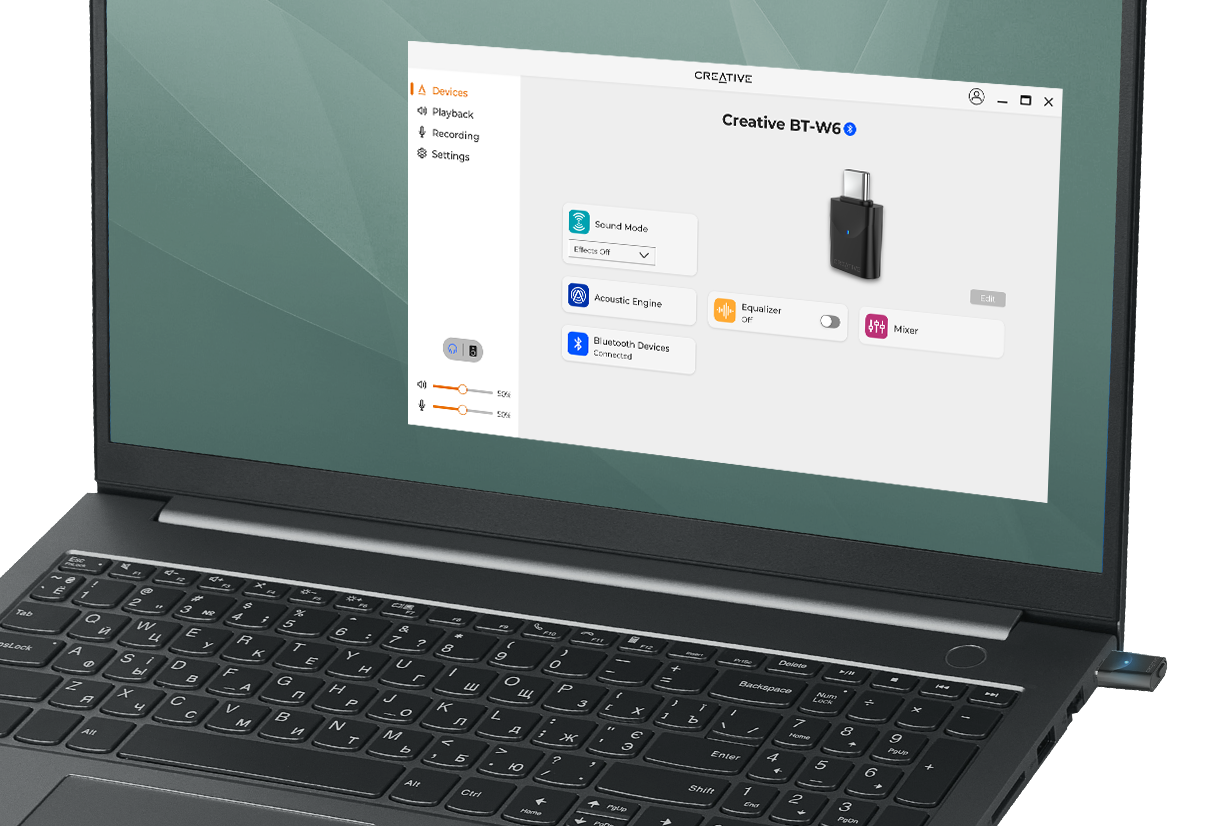 Creative BT-W6即插即用,操作简单。它通过高通骁龙音效技术的增强,可实现即时的蓝牙音频流升级,提升音频和视频同步等功能的优秀解决方案。此外,它还增强了与最新 PC、Mac 和游戏机的兼容性,是满足您所有音频需求的理想选择。
