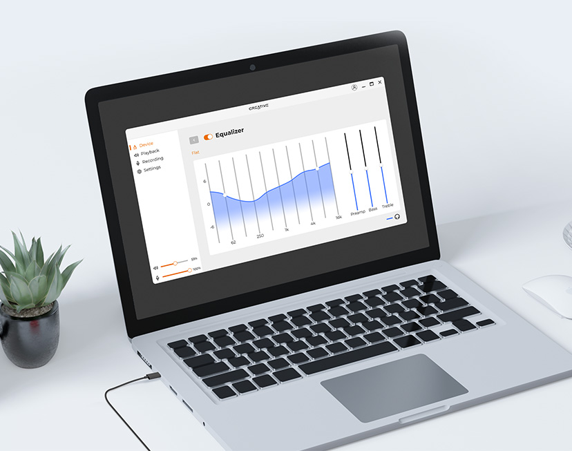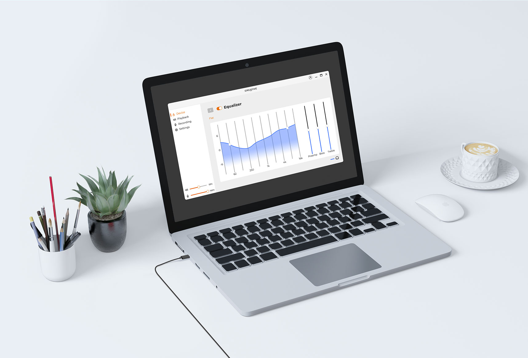 聆听您最喜爱的音乐是一种美妙的体验。进一步加大 USB-C 耳麦的玩法,通过我们的一体式 Creative 应用程序,实现自定义图形均衡器、音频播放等功能,随时定制您的 EQ!
