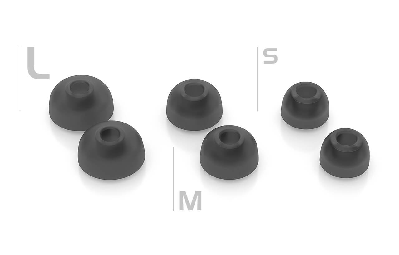 耳塞的物理尺寸略有缩小,这意味着 Creative Outlier Air V3 现在比以往任何时候都能够更舒适地佩戴在您的耳朵中!这种设计是经过多次产品设计迭代和测试(不让耳朵受到伤害)以获得更好贴合度的结果。 从三套不同尺寸的软硅胶耳塞套中选择更适合您的。请注意,即使我们的左右耳也可能需要不同尺寸的耳塞套!