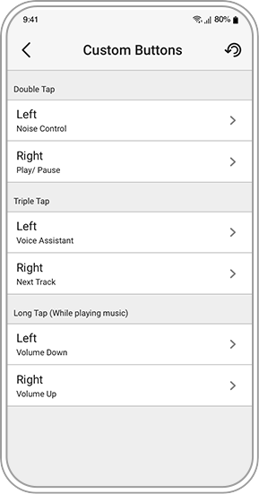 我们知道我们每个人要的功能都有所不同,因此这意味着您可以掌控这些功能并自定义您的触摸控制! 在 Creative 应用程序上,通过自定义按钮模块,更改您喜欢的功能并将其分配给控件 - 无论是双击、三连击还是长按以跳过曲目、调整音量或激活语音助手和噪音控制功能 – 都可以您的方式个性化它们。