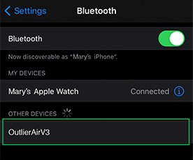 在您的移动设备上打开蓝牙。 在蓝牙设置界面,搜索“Outlier Air V3”,选择配对。