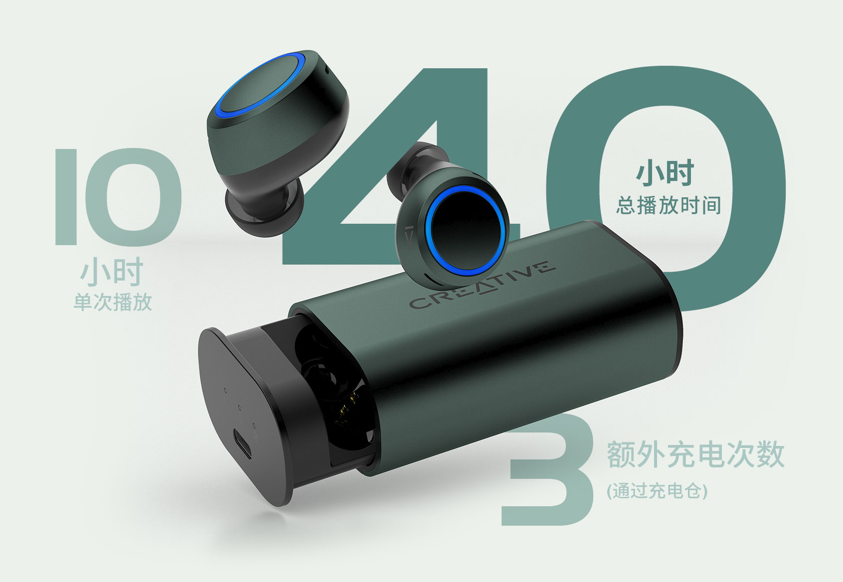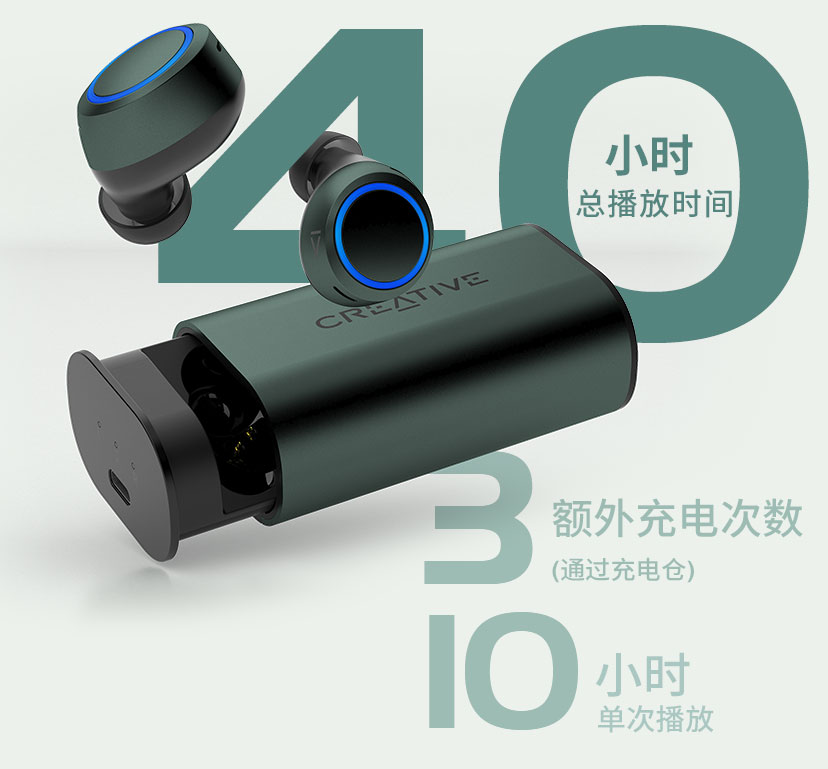 使用Creative Outlier Air V3后您将爱不释手。耳塞单次充电可以使用长达 10 小时——配合充电仓最长可达 40 小时。