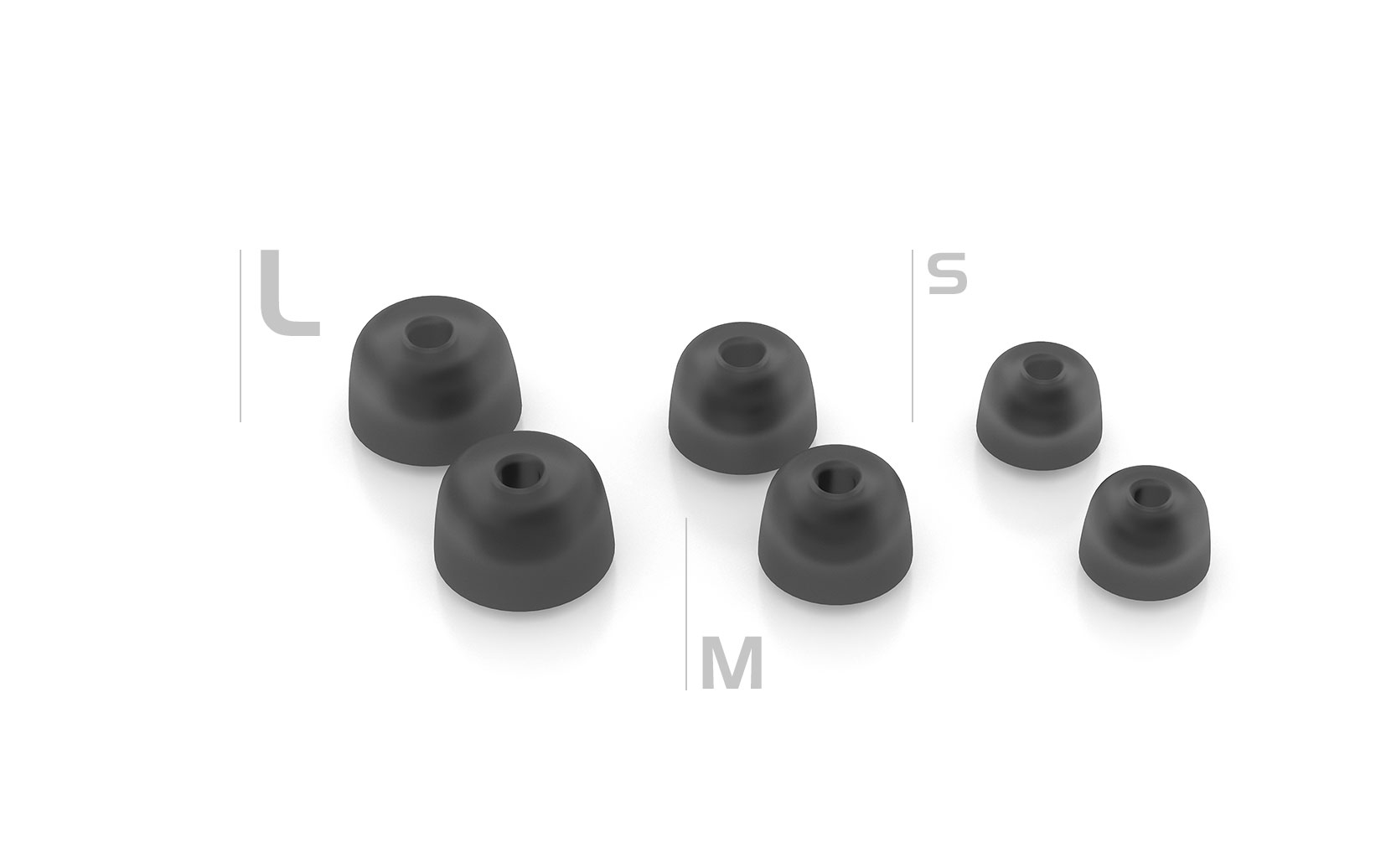 被动噪声隔离对于有效的噪声抑制同样重要。这就是为什么我们要确保我们的耳塞更好贴合您的耳朵。从三套柔软硅胶耳塞套中选择适合您的耳塞套,为每只耳朵尝试不同的尺寸,找到更适合您的耳塞套!
