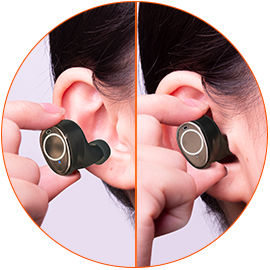 将其轻轻向上和向内朝耳道方向扭转,以获得稳固贴合和舒适感。